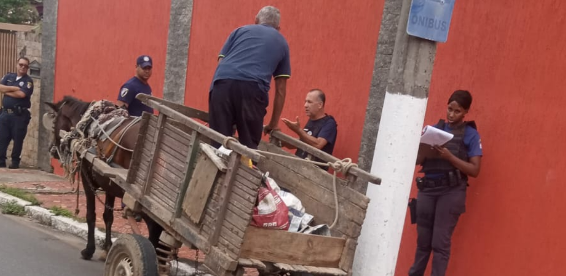 GCM orienta condutor de carroça em Cruzeiro, SP após constatar possível descumprimento de lei municipal