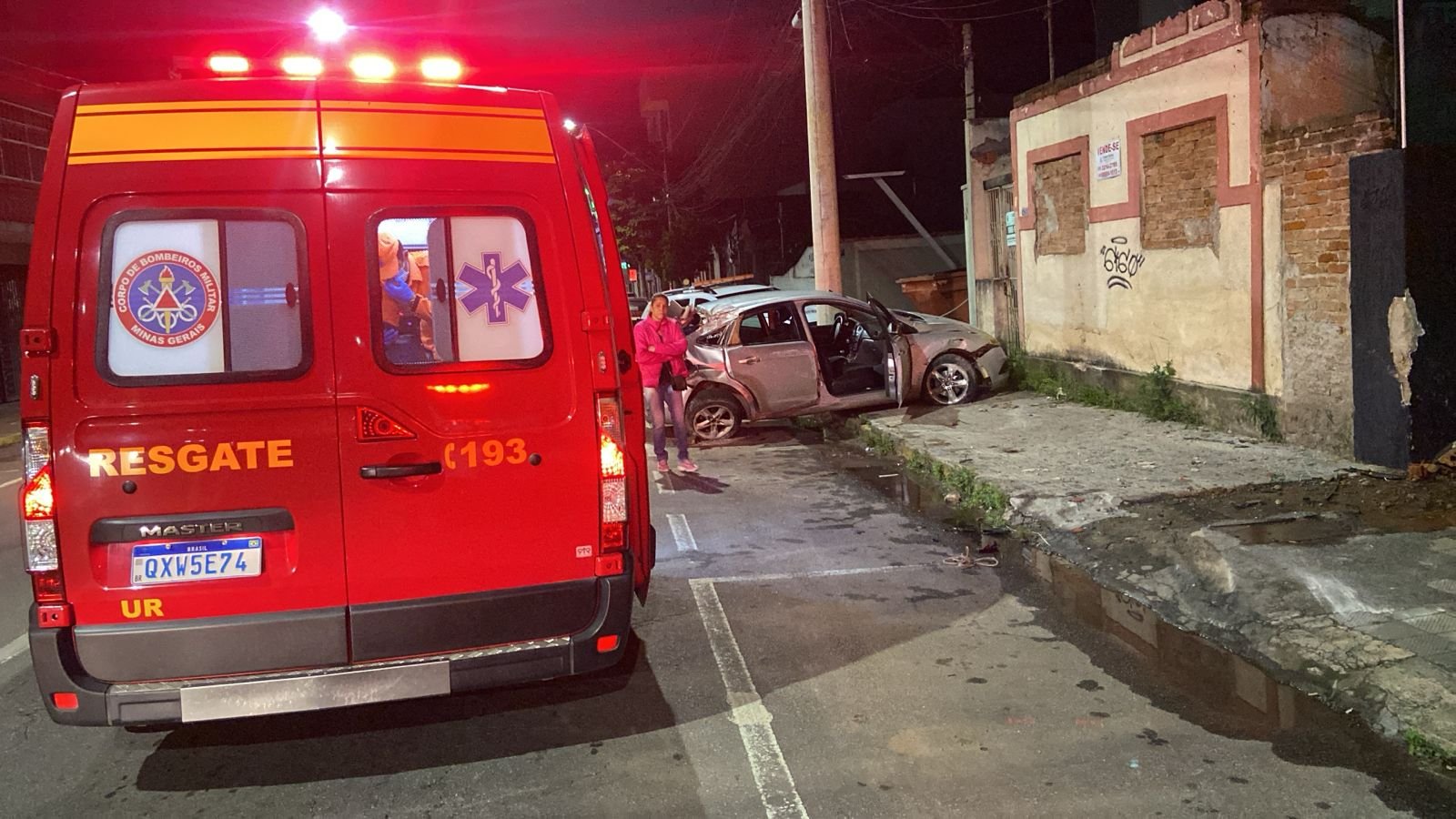Condutor perde controle de veículo e bate contra muro em Varginha, MG