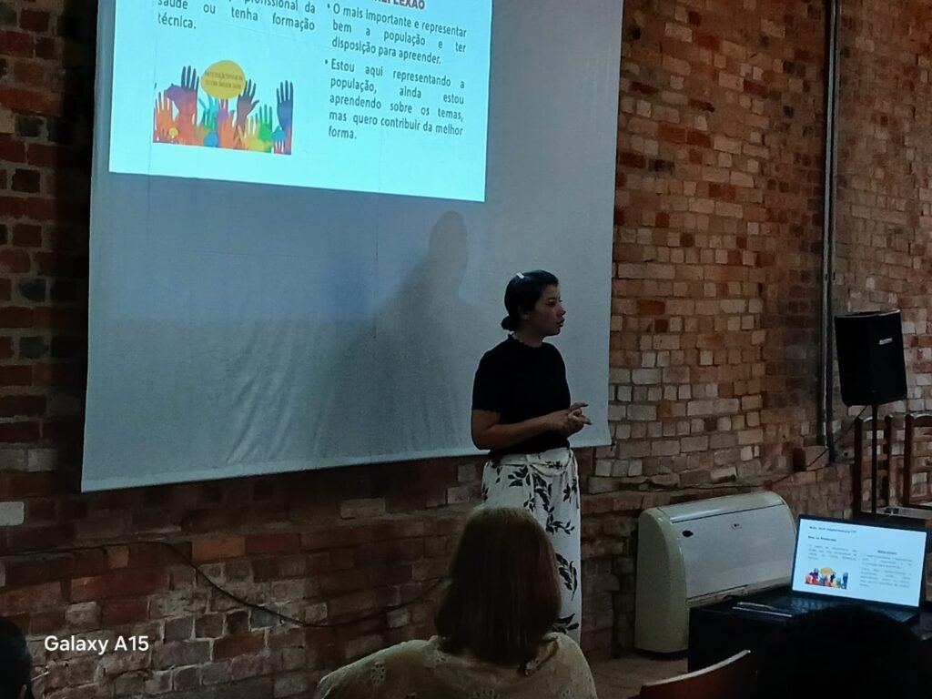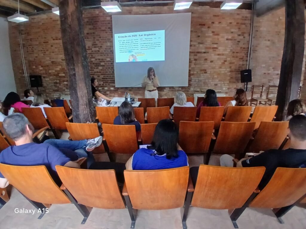 As palestrantes Marilda Uchoas e Dra. Cláudia Belchior conduziram as apresentações, abordando temas voltados à função, responsabilidade e relevância da atuação dos conselheiros municipais, especialmente na construção e acompanhamento das políticas públicas de saúde e de outras áreas essenciais.