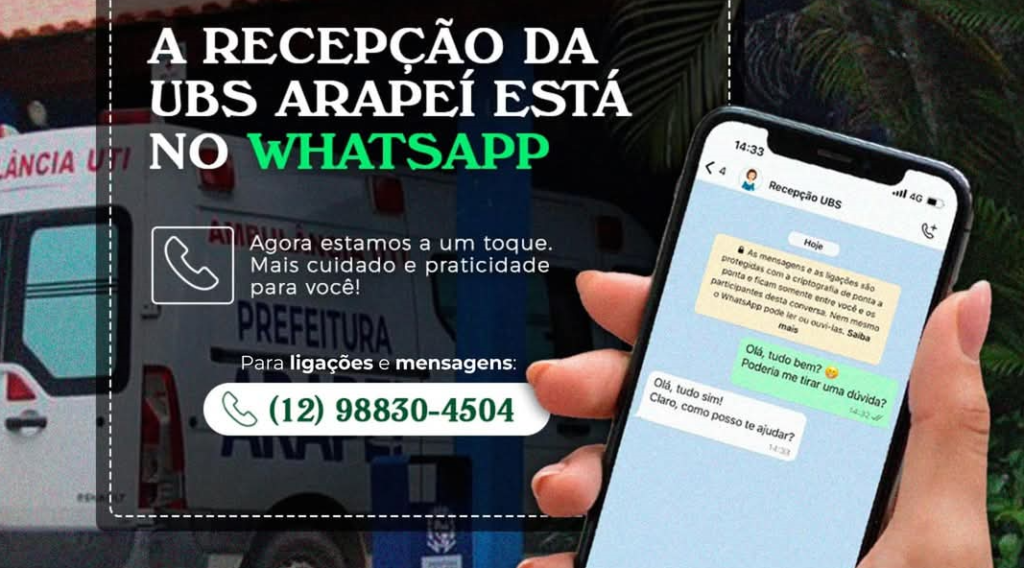 Saúde em Arapeí, SP dá passo inovador: UBS passa a atender pelo WhatsApp 24 horas