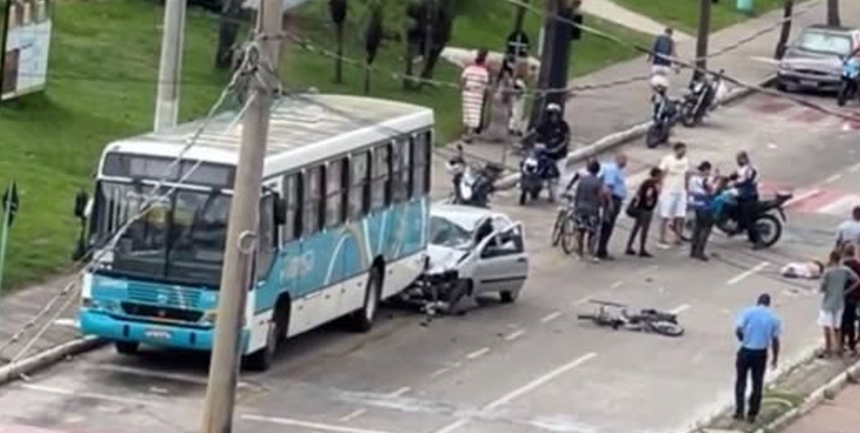 Acidente envolvendo carro, ônibus e bicicleta deixa uma vítima fatal no Centro de Três Rios, RJ