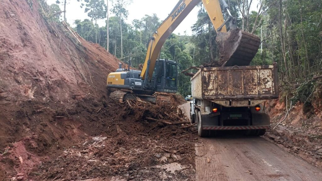 BR 354 segue totalmente interditada em Itamonte, MG, após quedas de barreiras e árvores sobre a via
