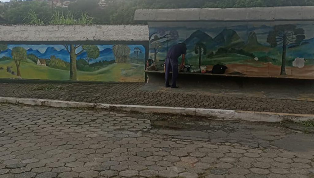 Prefeitura de Piquete, SP revitaliza praça e ponto de ônibus com pintura inspirada na Serra dos Marins