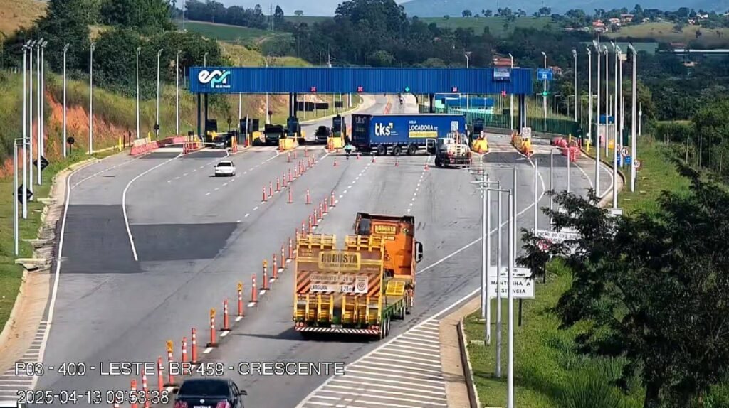 Motorista de carreta bloqueia pedágio na BR-459 em Santa Rita do Sapucaí, MG em protesto contra cobrança e é multado