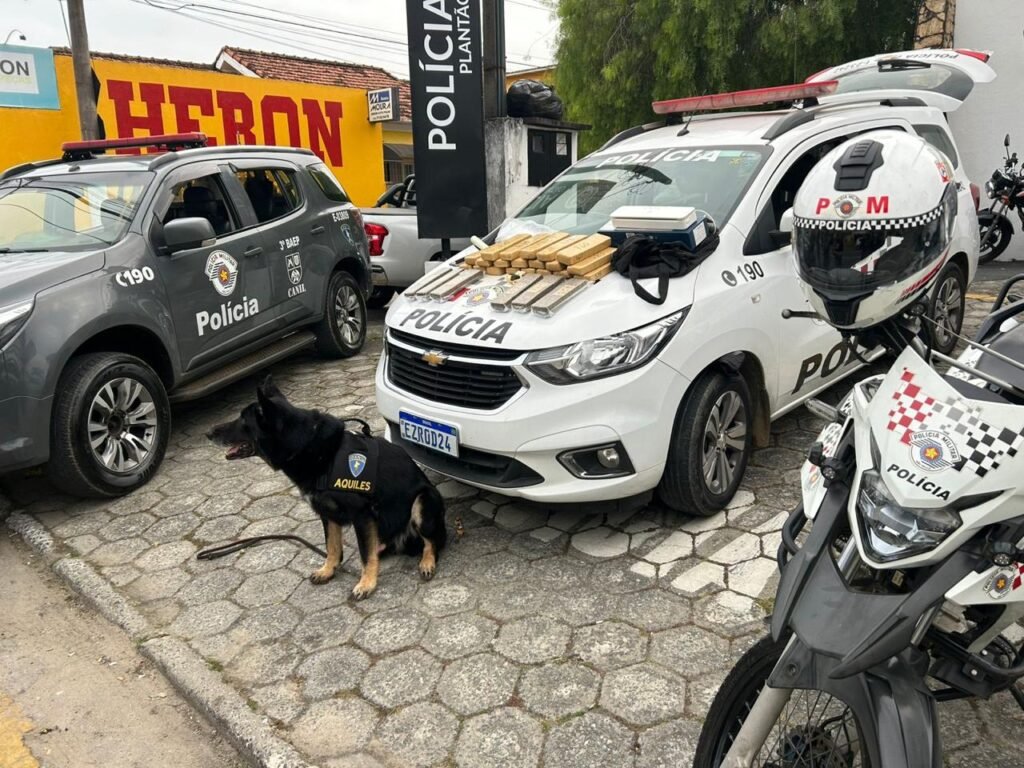 Homem é preso por tráfico de drogas com apoio do Canil do BAEP em Guaratinguetá, SP