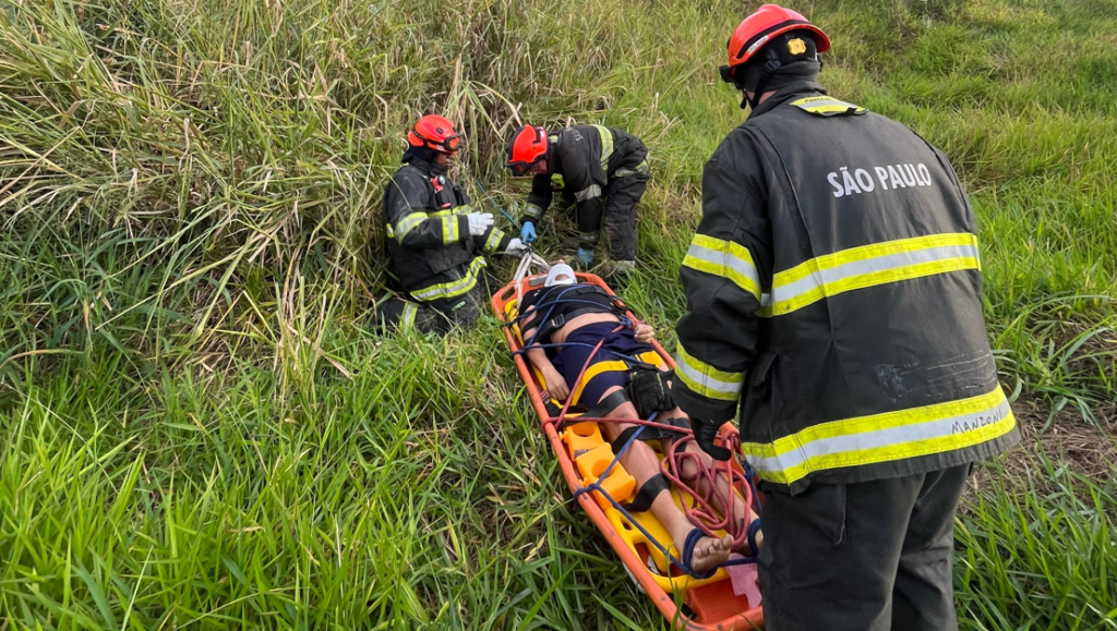 Homem é resgatado após carro cair em ribanceira em São José dos Campos, SP