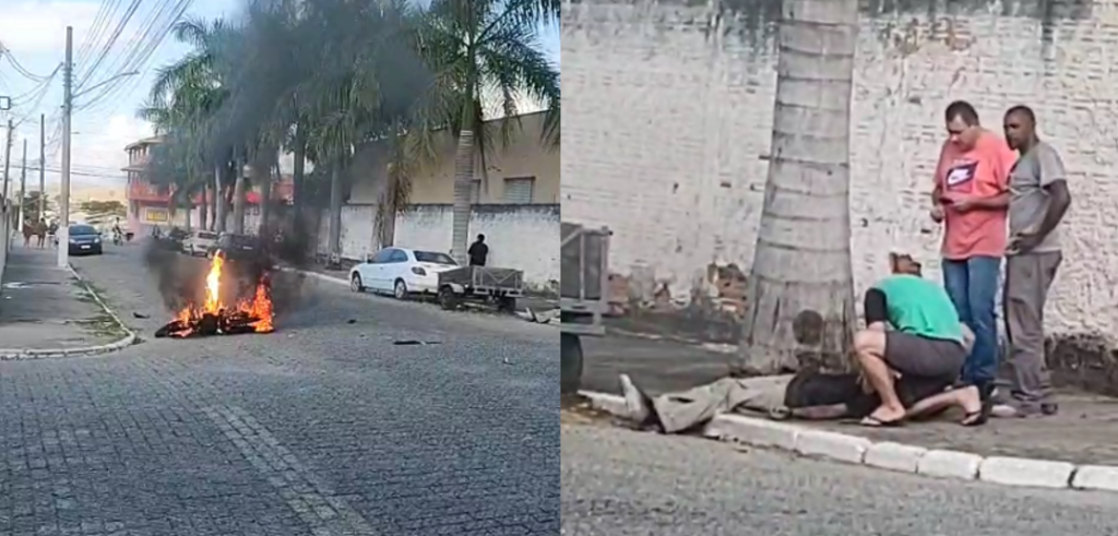 Homem fica ferido após motocicleta pegar fogo em movimento em Cruzeiro, SP