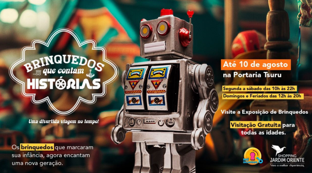 Diversão em família com a exposição “Brinquedos que Contam Histórias” até 10 de agosto no Shopping Jardim Oriente em São José dos Campos, SP