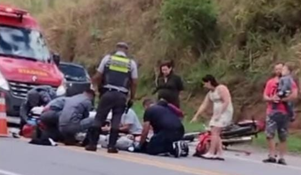 Acidente entre motocicletas deixa um ferido na Rodovia Paulo Virgínio em Guaratinguetá, SP