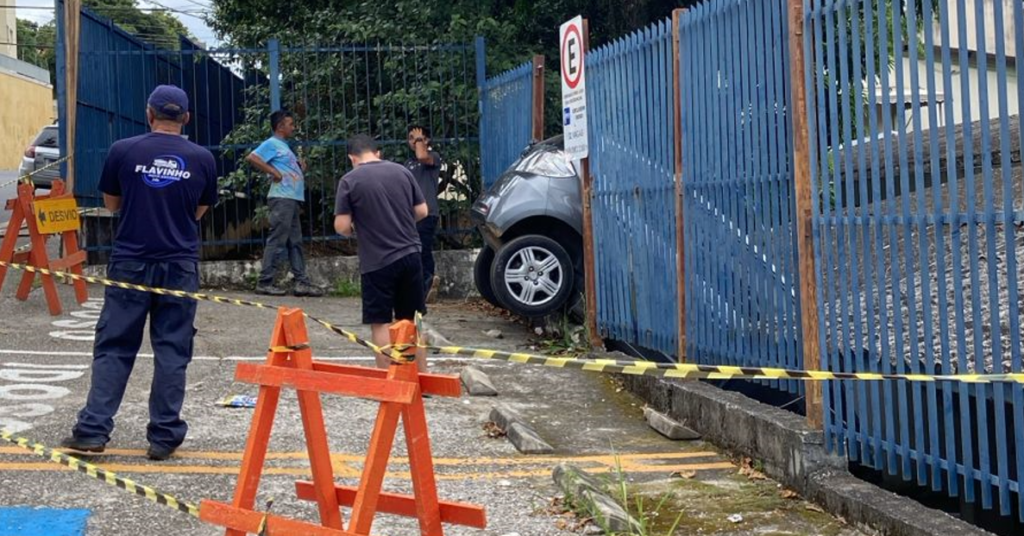 Carro cai sobre telhado de unidade de saúde em Caçapava, SP após erro de marcha