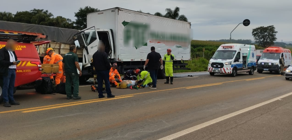 Caminhão colide com carreta na MGC-491 em Poços de Caldas, MG e motorista é resgatado pelos Bombeiros