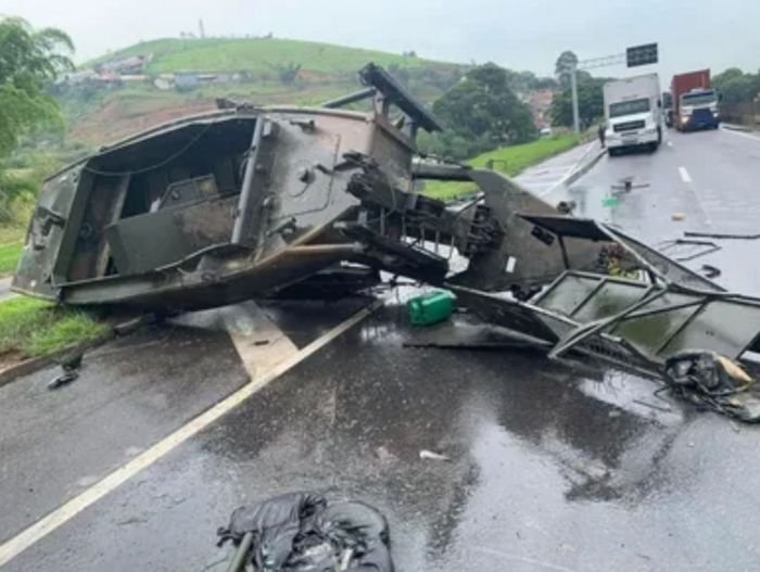 De acordo com a CCR RioSP, concessionária que administra a rodovia, o acidente aconteceu quando o reboque de uma carreta militar se desprendeu e invadiu a pista contrária, colidindo frontalmente com outra carreta. Felizmente, não houve registro de vítimas, apenas danos materiais.