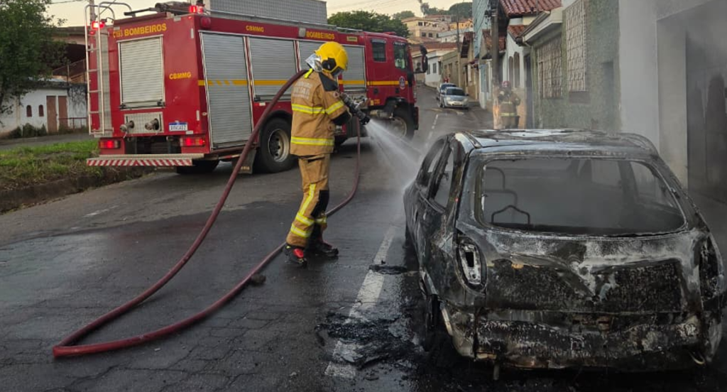 Incêndio destrói veículo estacionado em via pública no bairro Triângulo em Três Corações, MG