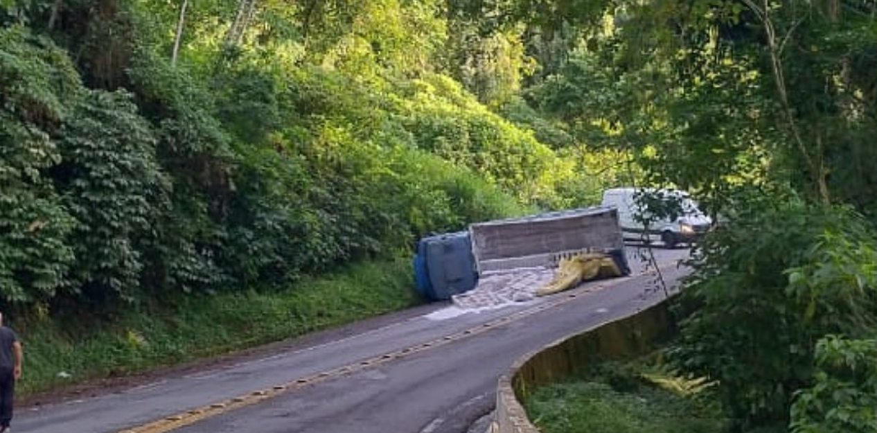 Na manhã desta quarta-feira (5), um caminhão tombou na serra da rodovia Oswaldo Cruz, entre Ubatuba e Taubaté. De acordo com informações do Departamento de Estradas e Rodagem (DER), o acidente ocorreu por volta das 7h15, na altura do km 83,1. Felizmente, o motorista não sofreu ferimentos.