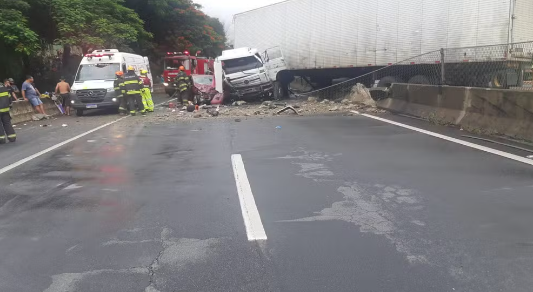 Com o impacto, a mureta foi destruída e a carreta bateu de frente com um carro que seguia na pista sentido São Paulo. A carreta ficou atravessada na pista, bloqueando o trânsito nos dois sentidos de tráfego.