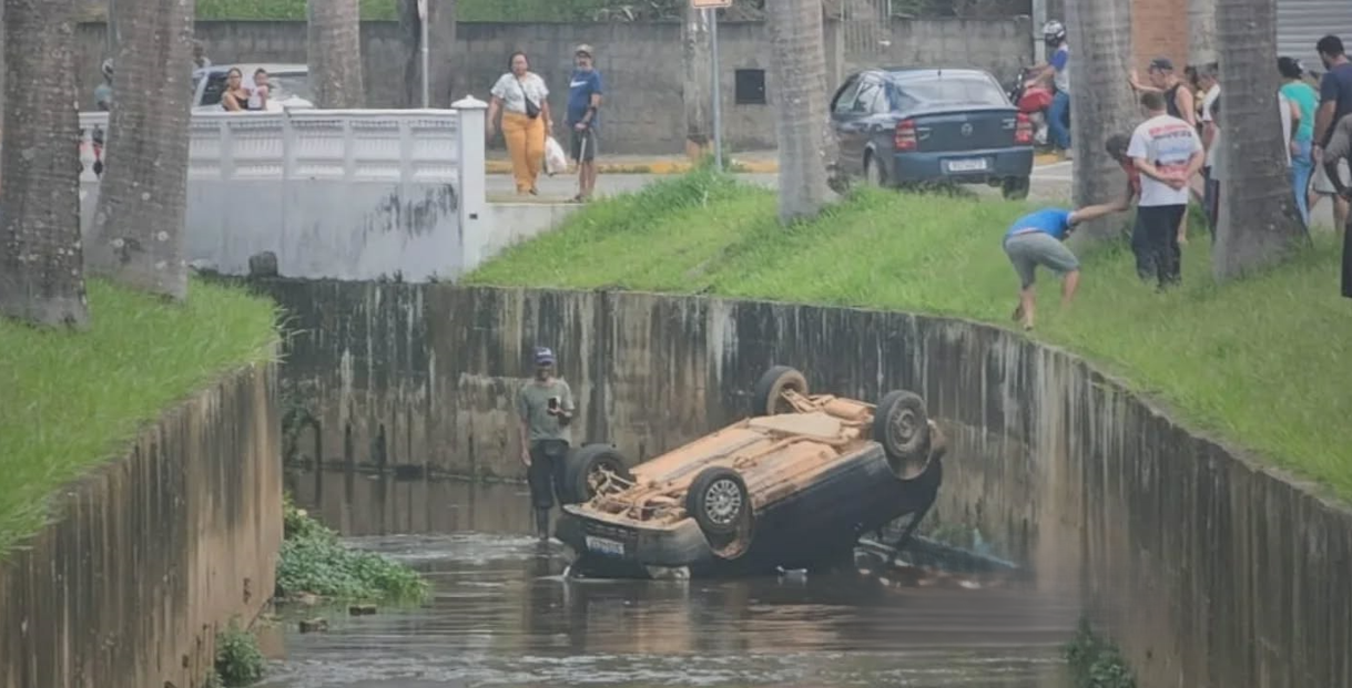 Na manhã desta quarta-feira (2), um carro caiu no Canal do Rio do Bengo, em Caxambu (MG). Apesar do susto, não houve feridos.