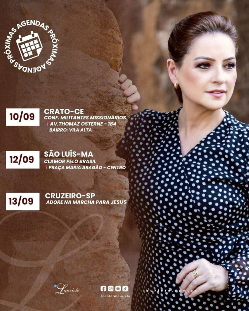O momento mais aguardado será a apresentação da cantora evangélica Lauriete, atração principal do evento. Reconhecida nacionalmente, a artista soma mais de 30 anos de carreira, com dezenas de álbuns lançados e músicas que se tornaram referência no cenário evangélico brasileiro.