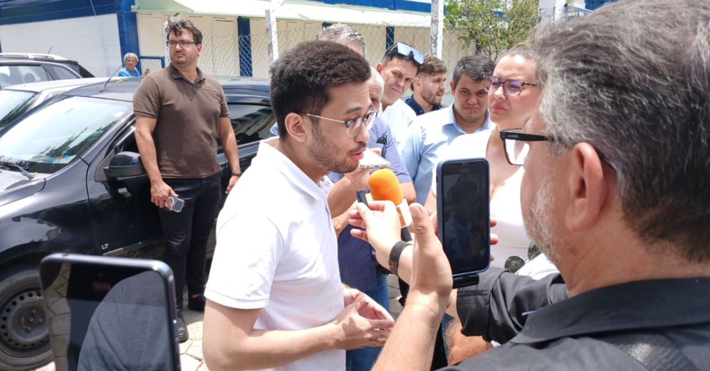 Durante evento de energia solar na rede municipal de ensino, deputado Kim Kataguiri destina recursos para melhorias em infraestrutura educacional, em parceria com o presidente da Câmara, vereador Paulo Filipe.