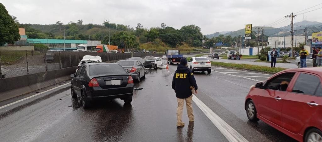 Um engavetamento envolvendo seis veículos foi registrado na manhã desta segunda-feira (9), no km 275 da Rodovia Presidente Dutra, no trecho de Barra Mansa (RJ). Segundo a Polícia Rodoviária Federal (PRF), uma mulher de 30 anos, condutora de um dos automóveis envolvidos, sofreu escoriações leves e foi socorrida pela equipe de resgate.