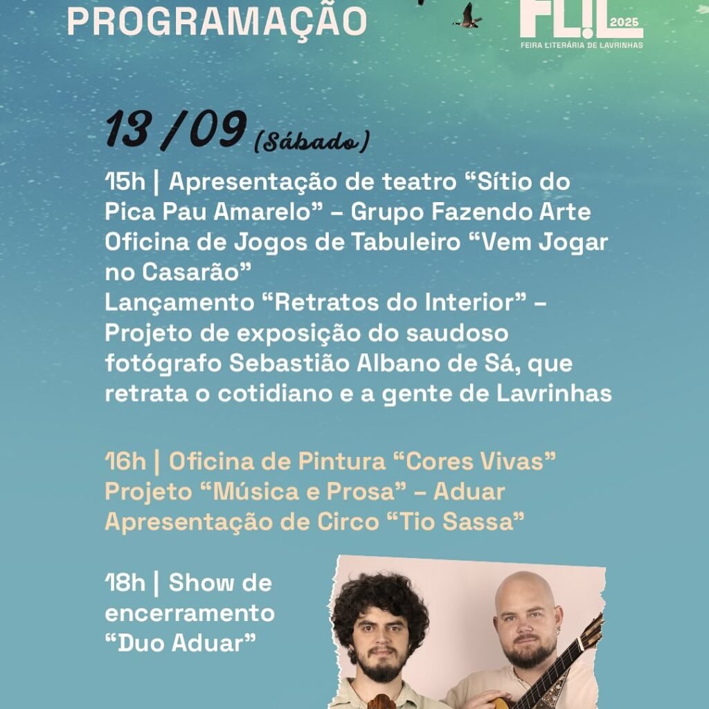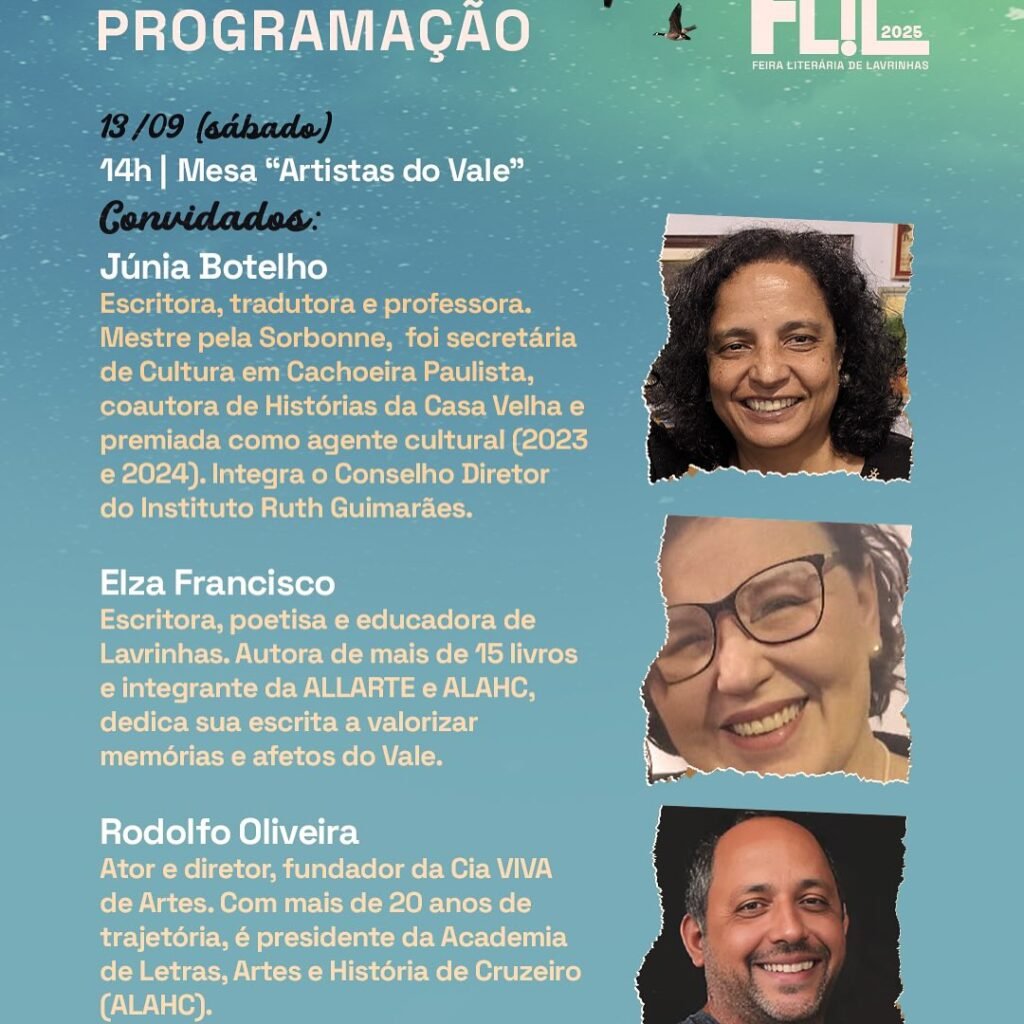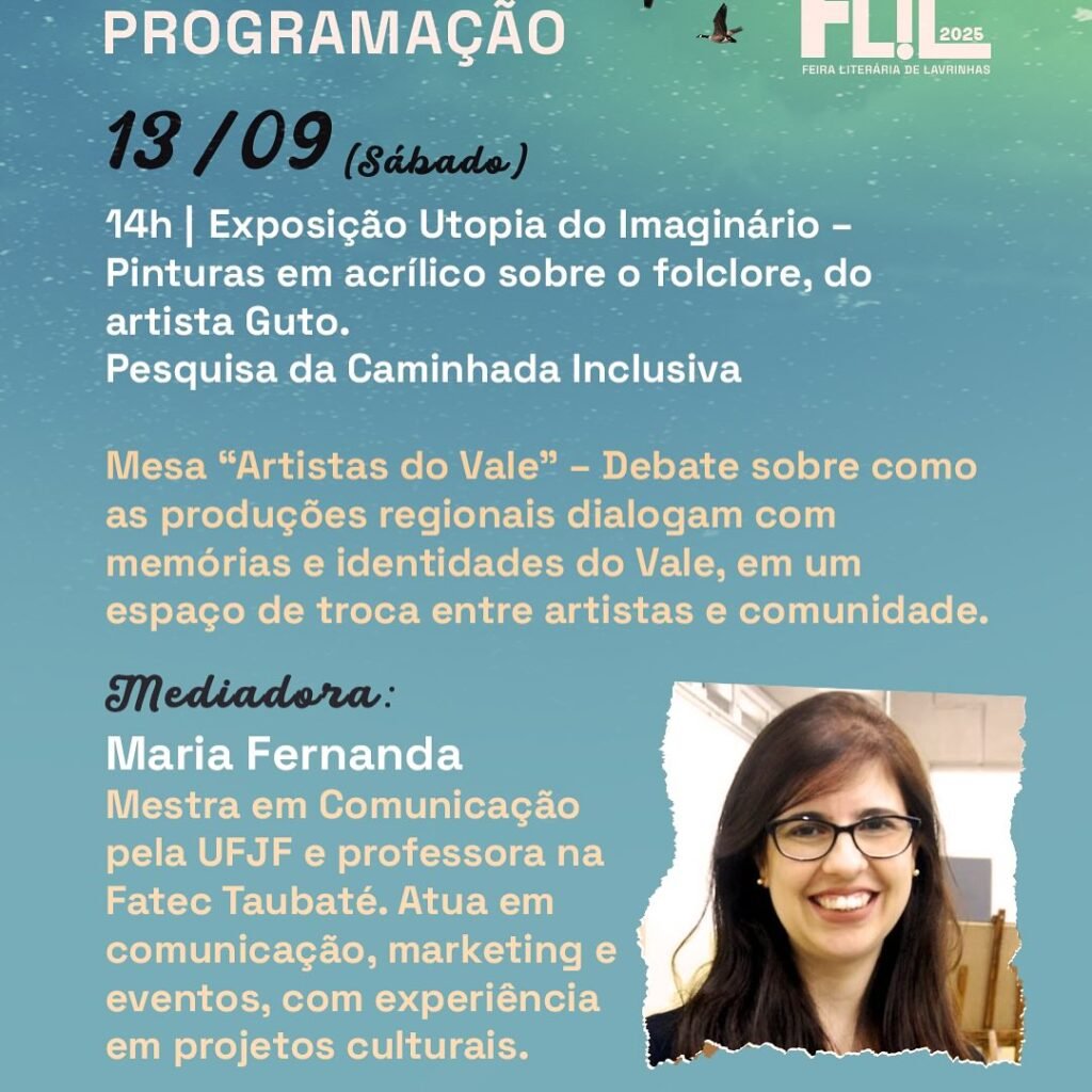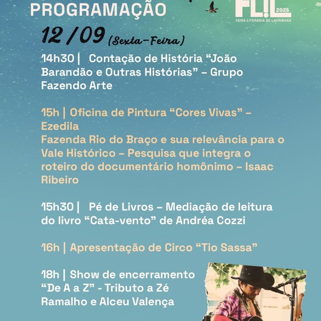 A cidade de Lavrinhas recebe, a partir desta sexta-feira (12), mais uma edição da Feira Literária de Lavrinhas (FLIL). O evento deste ano traz como tema “Memórias do Vale: raízes, caminhos & identidades” e contará com dois dias de atividades culturais abertas ao público.