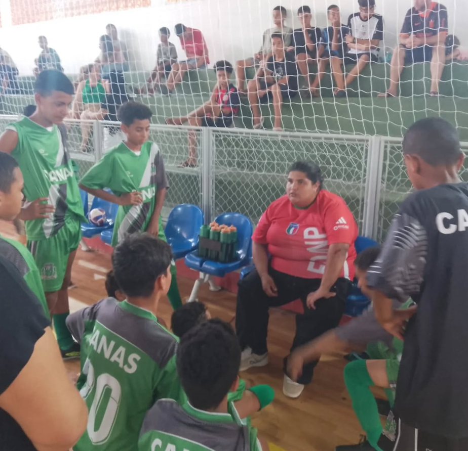A professora Vitória atua diretamente na iniciação esportiva com crianças entre 7 e 13 anos, etapa considerada fundamental para a formação esportiva e social dos participantes.