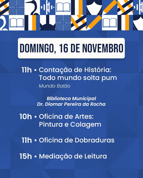 A Prefeitura reforça o convite à população: “Traga seus filhos, amigos e familiares para viver momentos inesquecíveis. A Festa Literária é uma celebração da nossa cultura, da nossa história e do patrimônio que nos une como comunidade”, destacou a nota oficial.