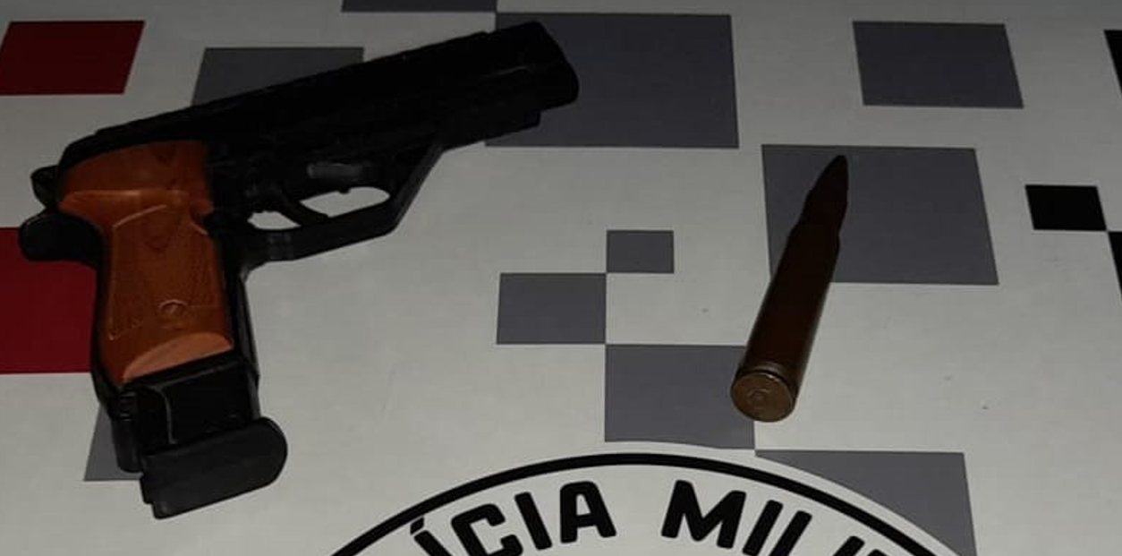 Durante a abordagem, o suspeito autorizou a entrada dos policiais na residência. No local, os agentes encontraram um simulacro de arma de fogo e uma munição calibre .50, de uso restrito.