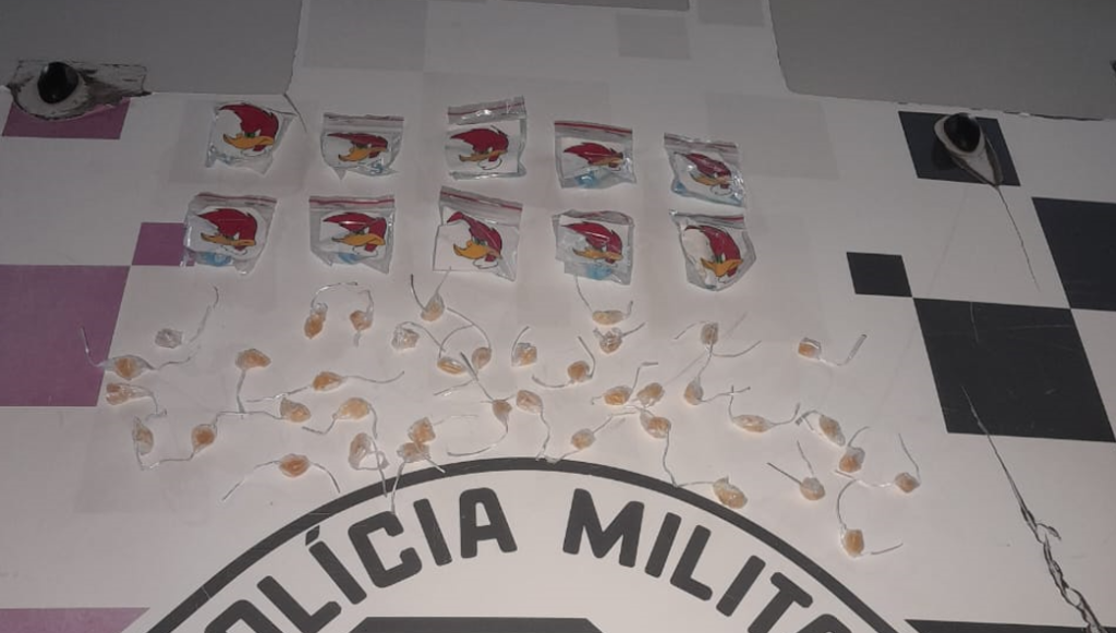 De acordo com a corporação, a equipe foi acionada pelo Copom após denúncia anônima sobre a prática de tráfico na região. No local, os policiais avistaram um indivíduo agachado próximo a uma área de mata no canteiro da via. Ao perceber a chegada da viatura, o homem tentou sair andando, mas foi abordado.