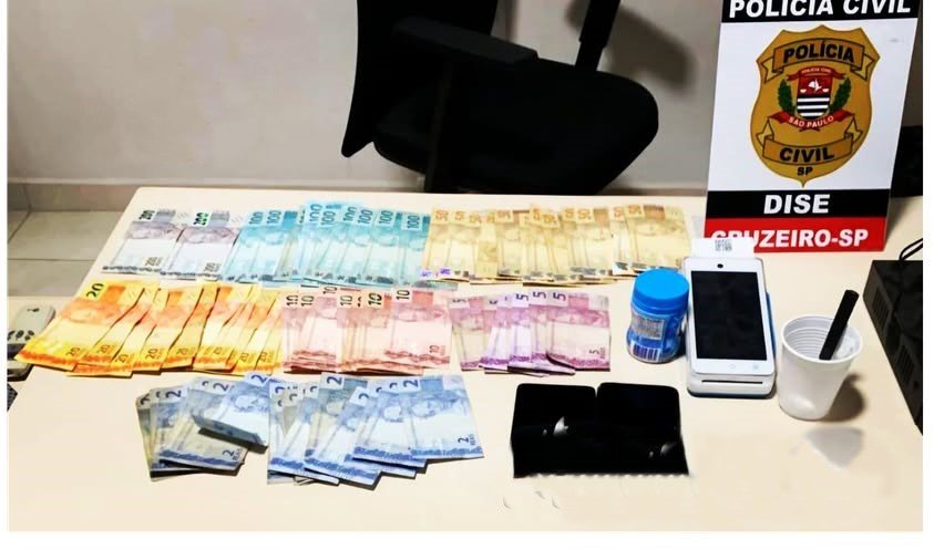 Durante a ação, os policiais apreenderam diversas porções de cocaína, uma maquininha de cartão utilizada para jogos de azar e a quantia de R$ 2.317,00 em dinheiro.