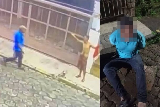 Um vídeo de câmeras de segurança mostra o momento em que o homem de 43 anos, sem camisa e de bermuda, caminha pela rua. Logo depois aparece um indivíduo trajando camisa azul de manga curta e calça escura. A vítima para na calçada da rua e suspende os braços diante da aproximação do outro, que já estava com a faca na mão direita. Os dois ficam muito próximos e o criminoso atinge o homem sem camisa com um golpe de faca. (Veja o vídeo ao final da matéria)