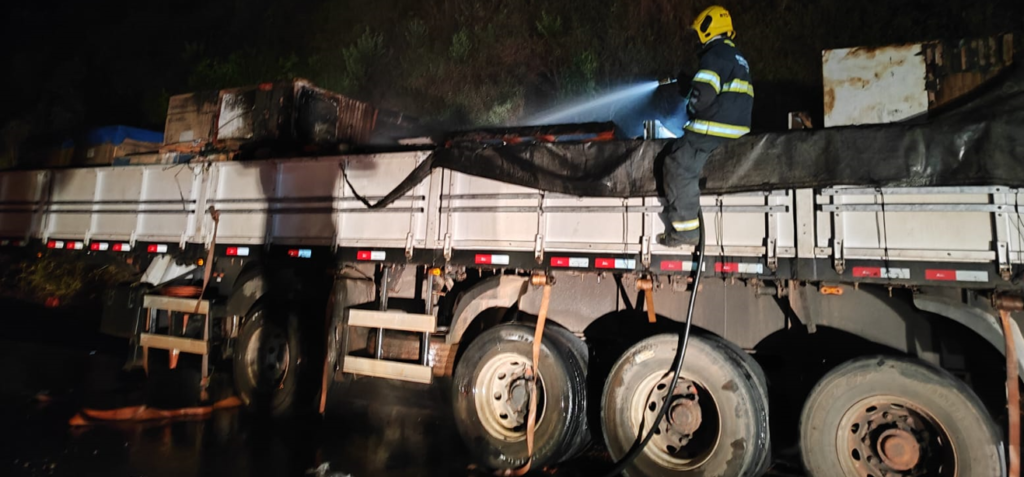 Na madrugada desta quinta-feira (15), por volta de 0h20, o Corpo de Bombeiros de Guaxupé foi acionado para atender um incêndio em uma carreta na BR-491, em Muzambinho, no Sul de Minas Gerais.