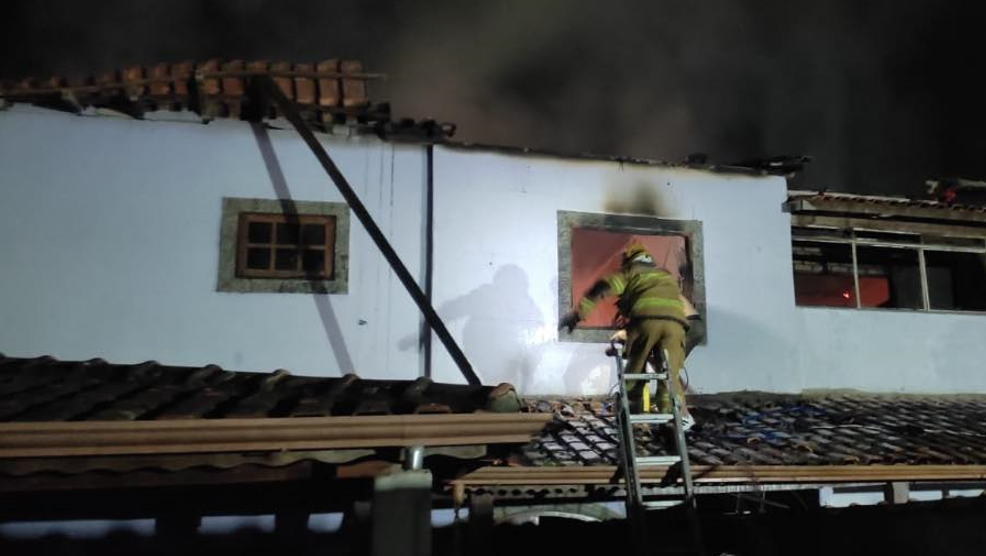 O fogo atingiu duas casas geminadas de dois pavimentos, consumindo três cômodos do pavimento superior de uma das residências e dois cômodos do pavimento superior da outra.