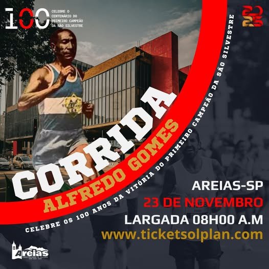 Estão abertas as inscrições para a Corrida Alfredo Gomes, que será realizada no dia 23 de novembro, em Areias (SP). O evento esportivo celebra os 100 anos da conquista de Alfredo Gomes, o primeiro campeão da tradicional Corrida de São Silvestre, realizada em 1925.