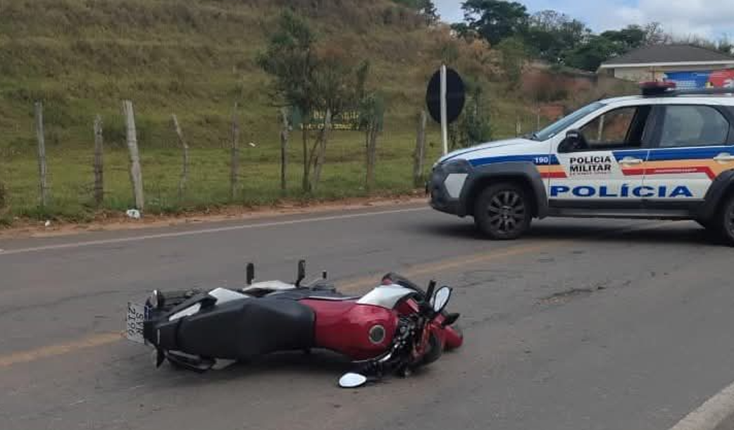 Motociclista de 22 anos ficou ferido; caminhão envolvido prestou auxílio no local