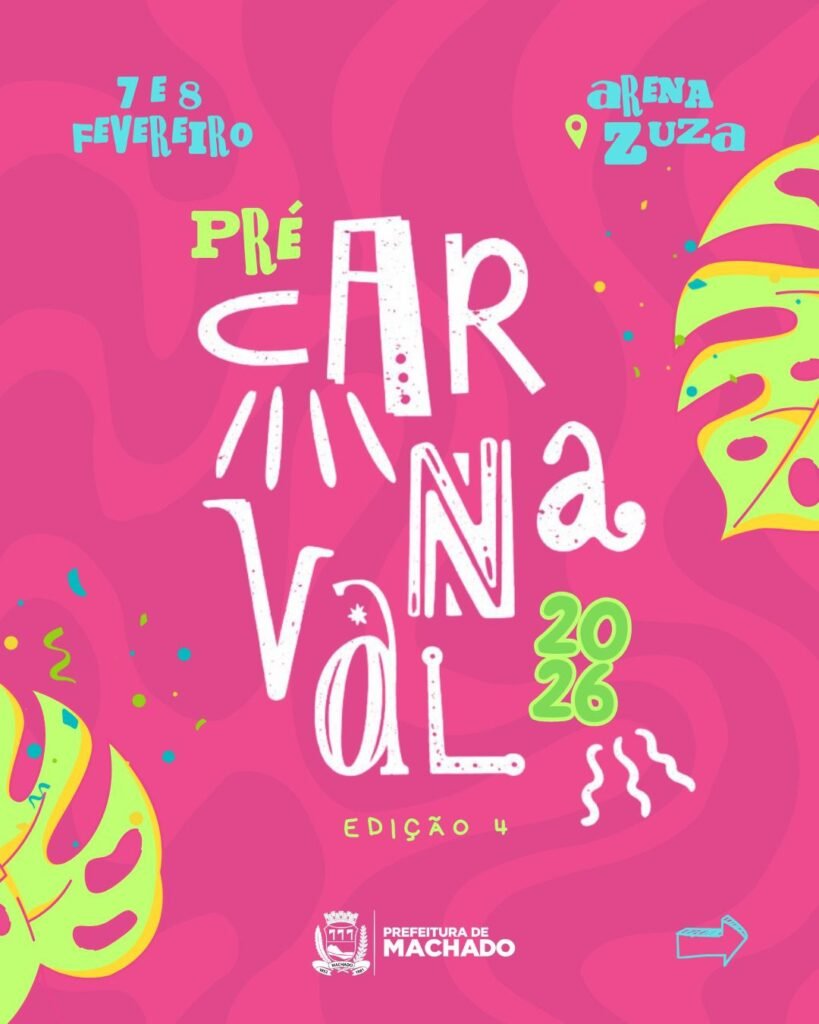 A Administração Municipal, por meio da Secretaria de Cultura e Turismo, realiza neste final de semana, dias 7 e 8 de fevereiro, a 4ª edição do Pré-Carnaval de Machado, consolidando o evento como uma das principais manifestações culturais do município e reafirmando o compromisso com a valorização das tradições carnavalescas e dos agentes culturais locais.