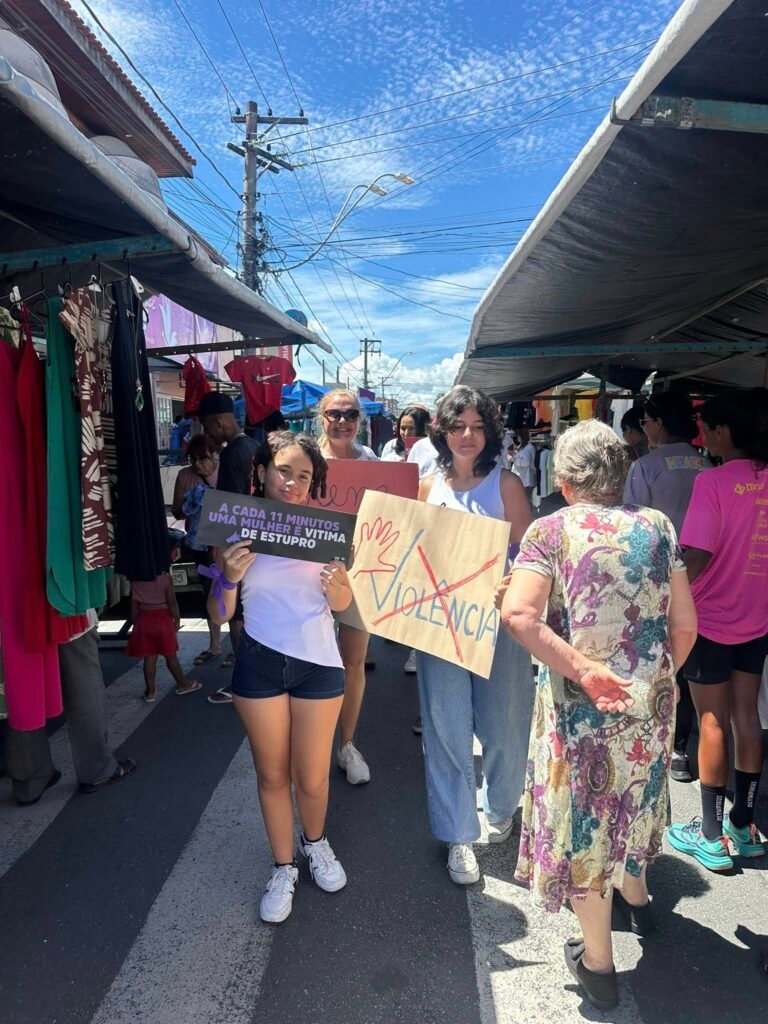 Ação pacífica realizada na feira livre do bairro da Cruz reuniu representantes da Câmara Municipal, da Procuradoria da Mulher e moradores em defesa dos direitos das mulheres