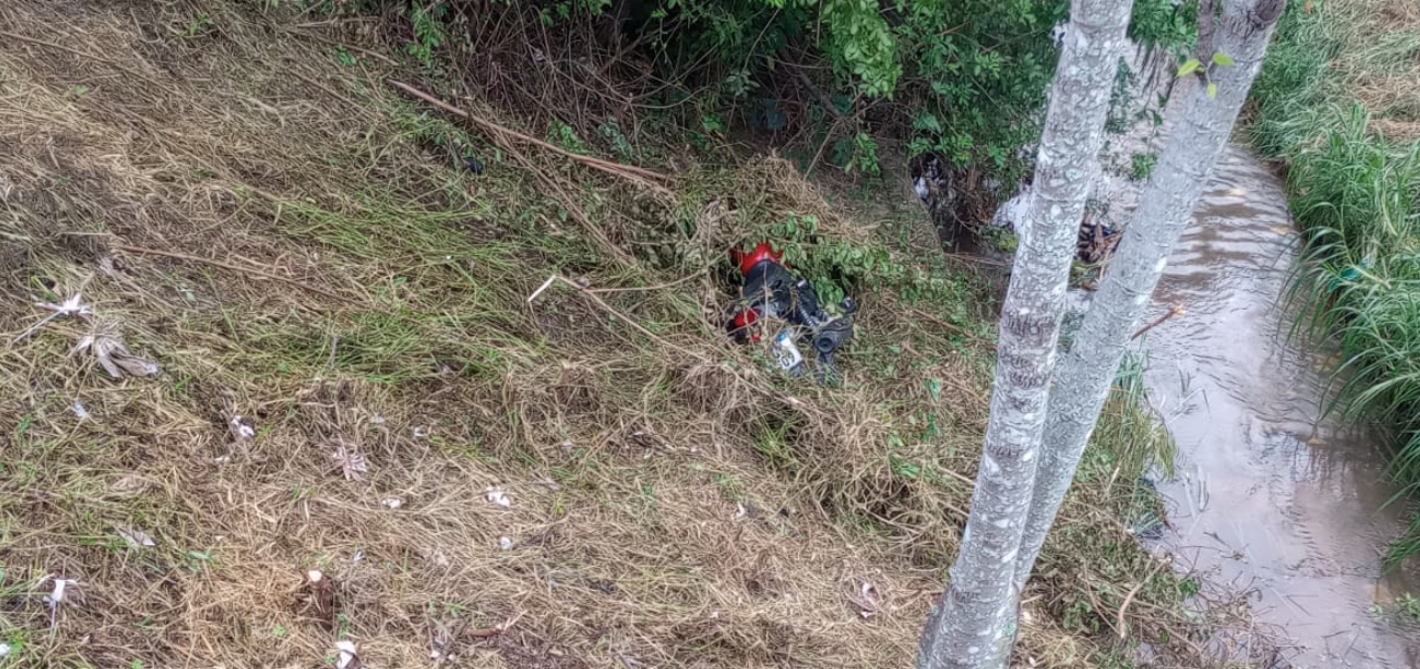 Na manhã desta quarta-feira (2), por volta das 7h30, internautas alertaram pelas redes sociais sobre uma motocicleta abandonada às margens do Córrego da Barrinha, na Vila Expedicionários, em Cruzeiro (SP). O veículo estava coberto por vegetação, parcialmente escondido.