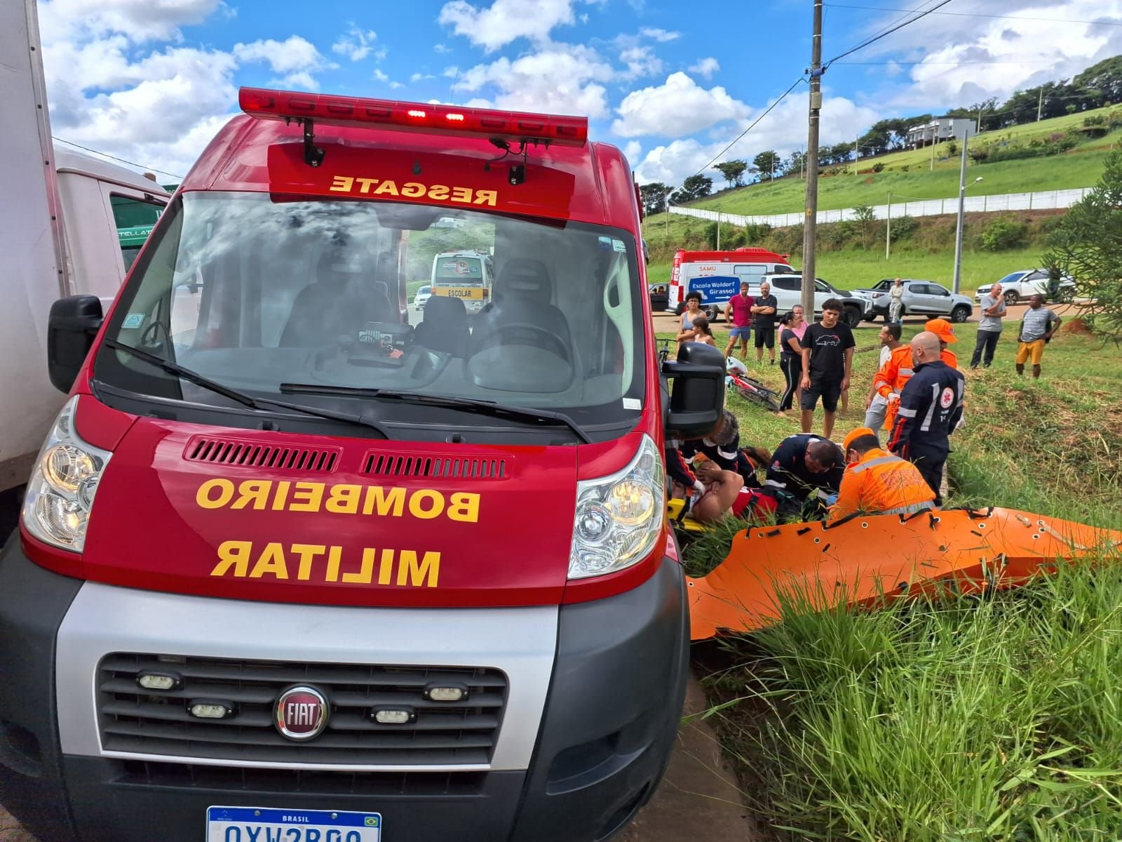 No local, os bombeiros encontraram a vítima, um homem adulto, consciente e orientado. Ele relatava dores na região lombar, mas não apresentava ferimentos visíveis. Após o atendimento inicial, o motociclista foi imobilizado preventivamente e encaminhado para o hospital de referência da região, onde passou por avaliação médica.