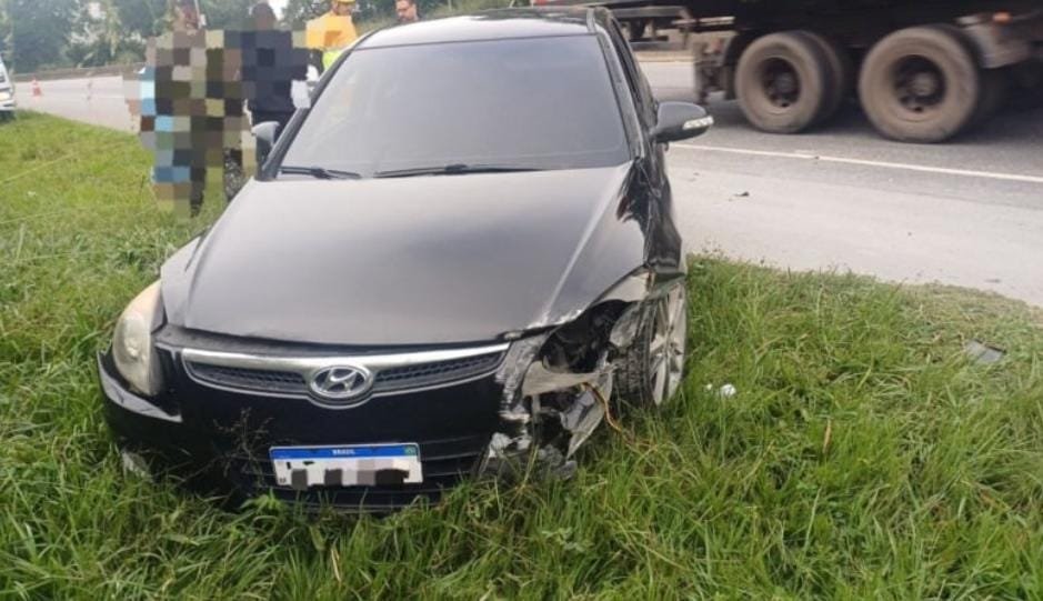 De acordo com a Polícia Rodoviária Federal (PRF), o carro colidiu contra a mureta central ao fazer uma curva e saiu da pista, parando no gramado lateral. O para-choque esquerdo do veículo ficou completamente destruído.