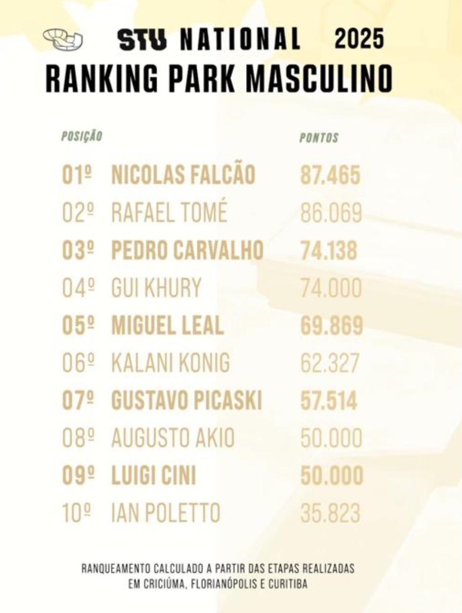 Rafael Tomé está em 2° no rankeamento do STU National, no Ranking Park Masculino. O skatista joseense está animado para as baterias do final de semana.