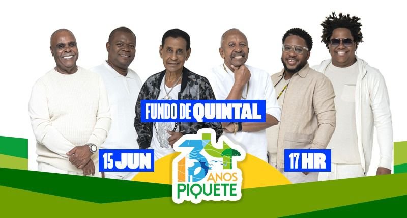 Com mais de 40 anos de carreira, o Fundo de Quintal revolucionou o samba ao incorporar instrumentos como o tantã, repique de mão e banjo, contribuindo para o surgimento do pagode. Entre seus sucessos estão clássicos como “A Amizade”, “O Show Tem Que Continuar” e “Lucidez”, que prometem embalar o público em um espetáculo nostálgico e animado.