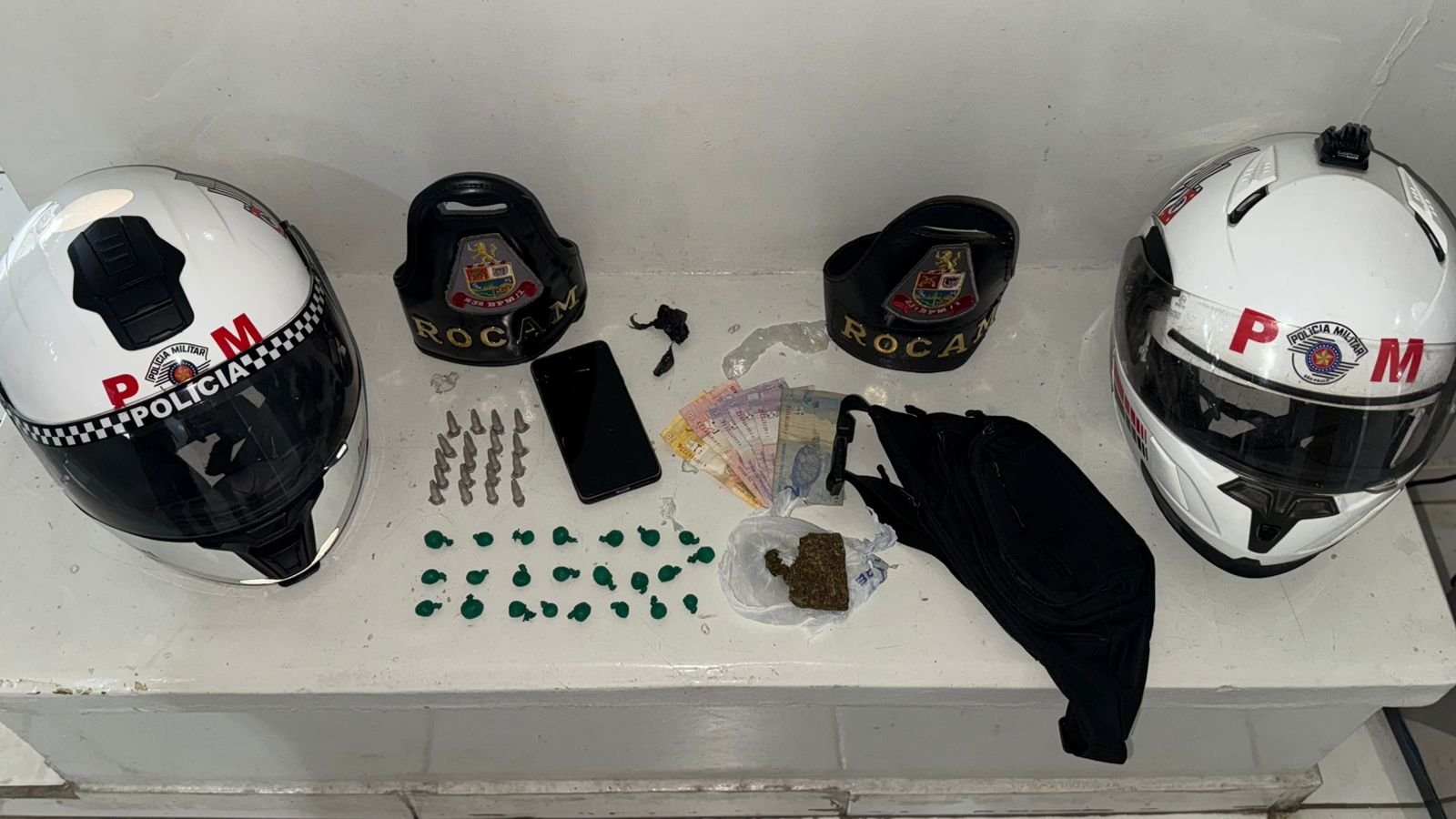 Na segunda-feira (13), durante um patrulhamento de rotina na Vila Loyelo, em Cruzeiro, SP, policiais militares abordaram três homens em atitude suspeita. A abordagem resultou na apreensão de drogas, dinheiro e um aparelho celular, que estavam em posse dos indivíduos.