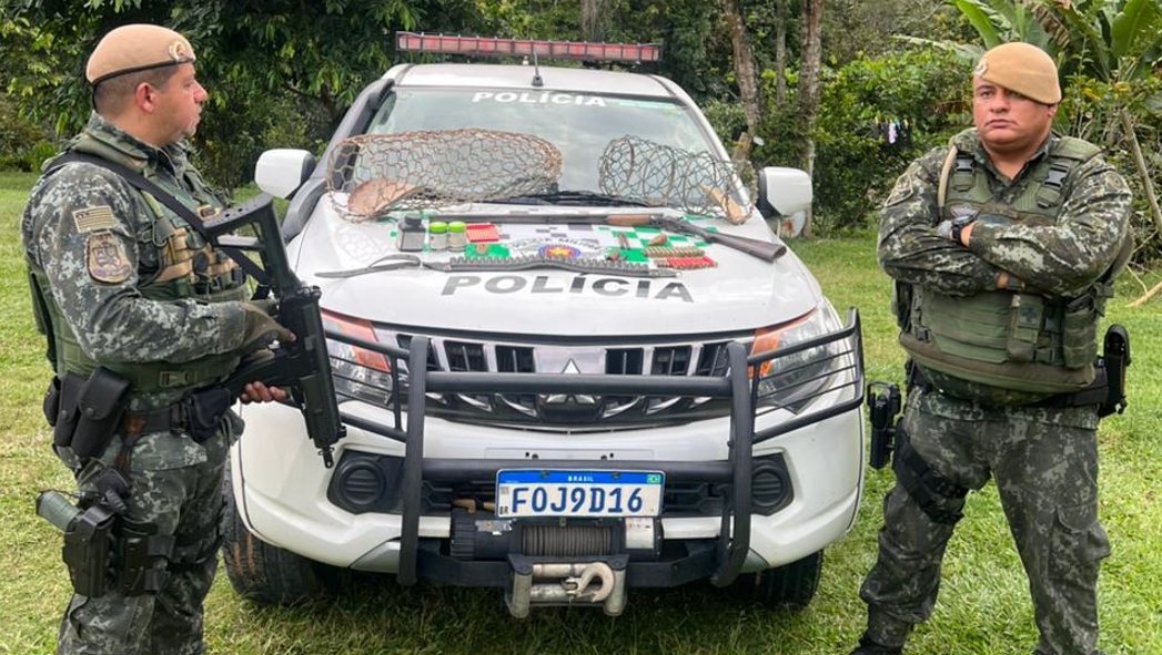 Diante do flagrante de posse irregular de arma de fogo e materiais relacionados à caça, o morador recebeu voz de prisão no local e foi conduzido à Delegacia de Polícia do município de Cruzeiro.