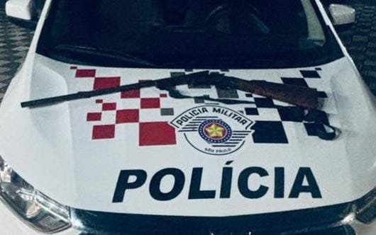Durante patrulhamento pela cidade, os policiais avistaram um indivíduo portando um objeto que aparentava ser uma arma de fogo. Diante da suspeita, a equipe realizou a abordagem e, após buscas no local, localizou uma espingarda calibre 20.