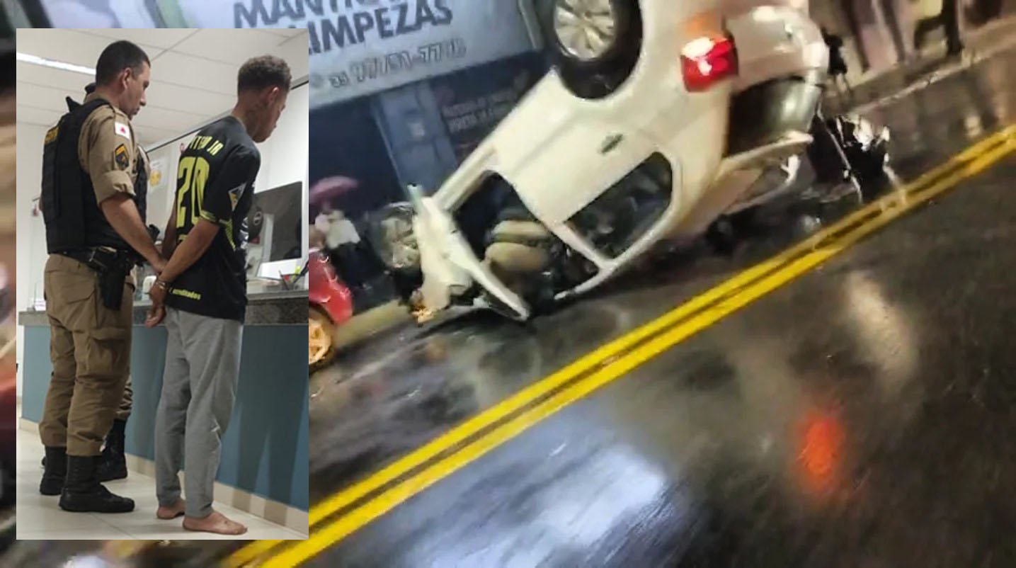 Nas proximidades do terminal rodoviário de São Lourenço, o motorista fugiu em direção ao perímetro urbano, tomando a Avenida Damião Junqueira de Souza. Durante uma tentativa de fuga, o suspeito colidiu com outro veículo, o que provocou o capotamento do VW Gol. Mesmo após o acidente, o homem abandonou o carro e tentou fugir.