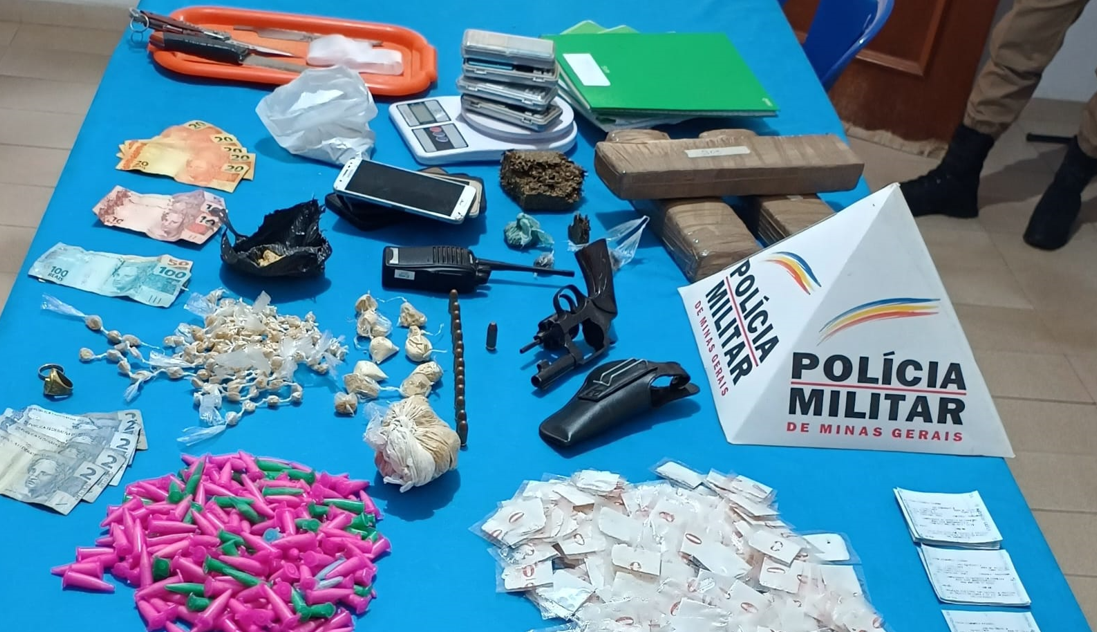 Durante a operação, os policiais apreenderam uma grande quantidade de drogas, incluindo cocaína, maconha, macarrão base e outros materiais relacionados ao tráfico. Além das substâncias ilícitas, foram encontradas armas de fogo, munições, celulares e outros itens utilizados na atividade criminosa.