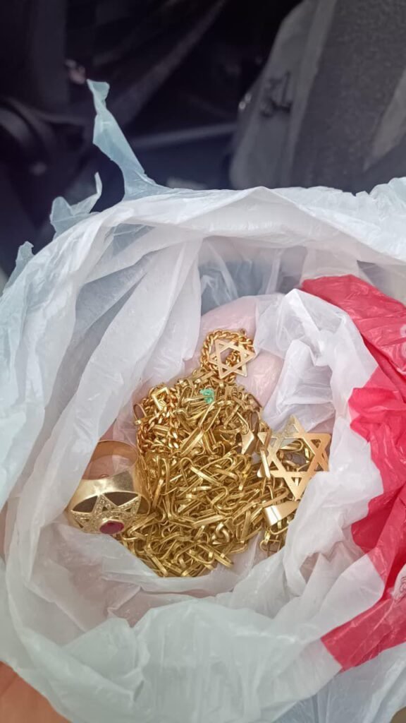 Durante a abordagem, os indivíduos resistiram e houve necessidade do uso moderado da força para contê-los e algemá-los. No interior do imóvel, um dos suspeitos indicou que os pertences das vítimas estariam dentro de um móvel usado como estante de televisão — e as buscas confirmaram: foram encontradas três correntes, dois anéis e duas pulseiras, objetos reconhecidos como subtraídos no roubo cometido na mesma data na Praia da Baleia.