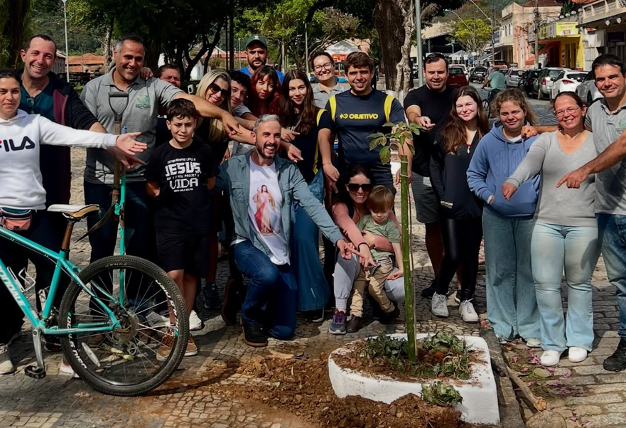 “Hoje tive a alegria de participar ao lado de estudantes do replantio de mudas de ipê no calçadão do centro histórico de Passa Quatro. É lindo ver uma árvore nascer das próprias mãos – um gesto que rega sonhos, purifica o ar e abraça gerações”, afirmou.