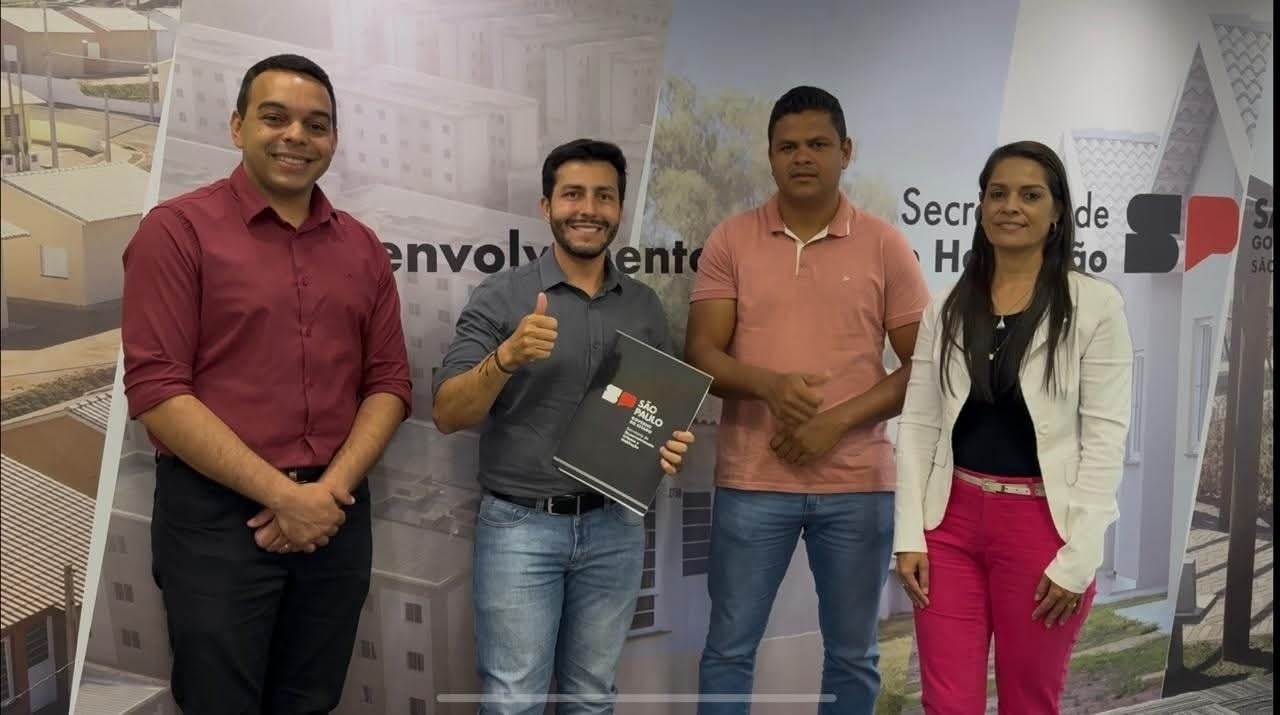 O prefeito de São José do Barreiro, Luís Eduardo Santos Ribeiro, o vice-prefeito Anderson Nascimento Torres e vereadores do município estiveram nesta semana na Secretaria de Habitação do Estado de São Paulo para discutir o avanço do processo de regularização fundiária local.