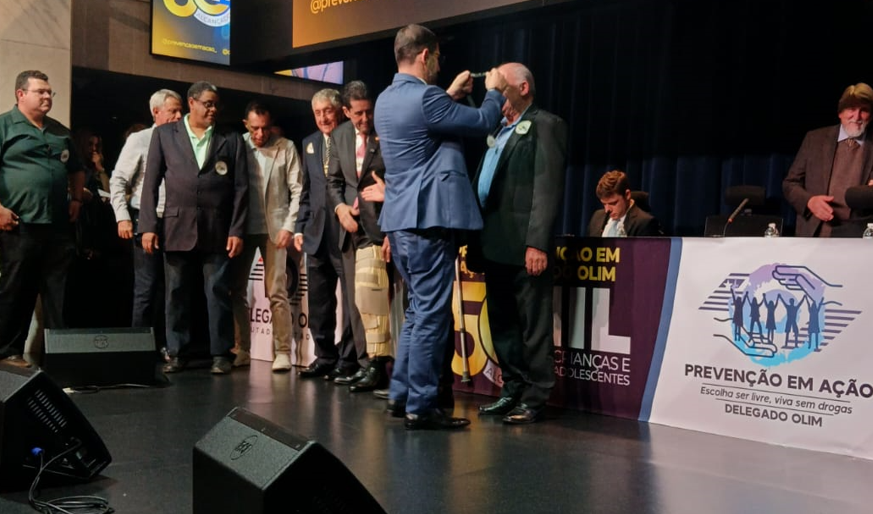 A honraria foi concedida por iniciativa do deputado estadual Delegado Dr. Olim (PP), idealizador do Projeto Prevenção em Ação, que desde 2016 realiza palestras e ações educativas sobre prevenção ao uso de drogas em escolas e universidades de diversas regiões do estado.